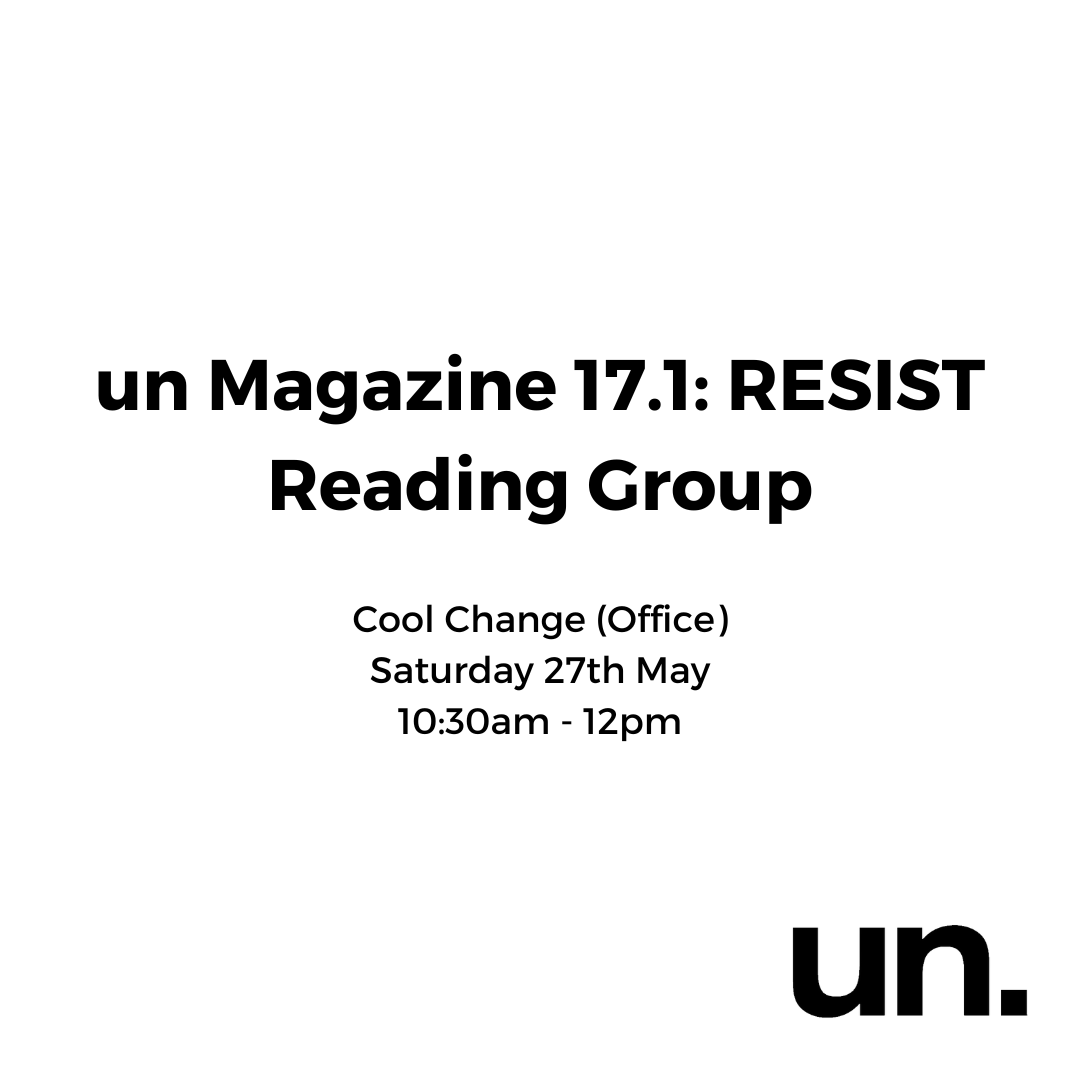 To accompany the upcoming launch of un Magazine 17.1: RESIST—edited by Bahar Sayed and Gemma Weston—you are invited to join a reading group for the discussion of Andrea Long Chu's first book 'Females: A Concern'. The discussion will be hosted at Cool Change, an artist-run initiative located in Boorloo (Perth CBD) / and digitally over Zoom.